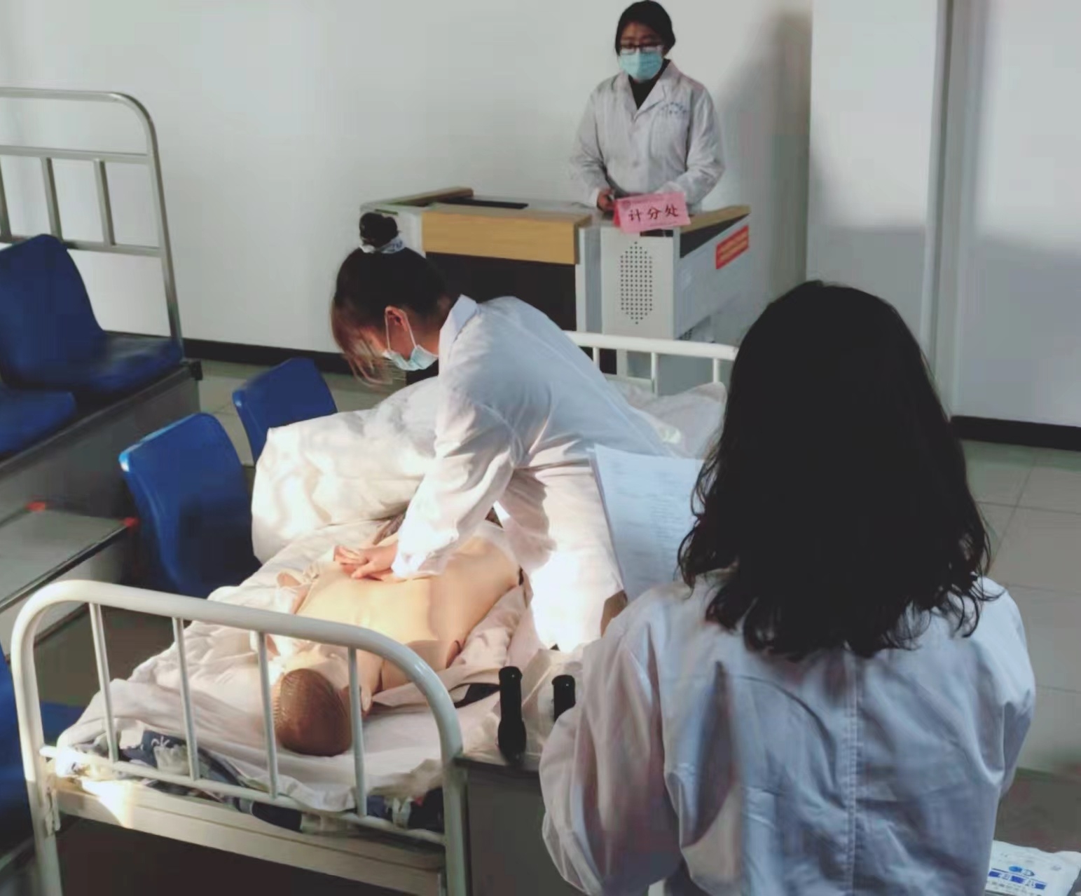 为进一步推动临床实践教学改革,创新实践教学体系,加强医学生临床思维、技能操作能力及人文关怀精神的培养,提升医学生创新能力、实践能力和团队合作意识,全面提高医学生综合素质和人才培养质量,医学院临床医学专业于2021年11月16日下午14:30-18:30对20级临床医学专科班选拔出来的10名学生在明德楼409进行决赛,本次比赛,严格按照疫情防控要求,控制到场人数,佩戴口罩。