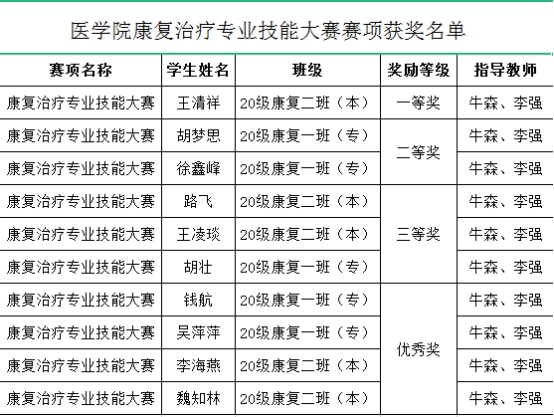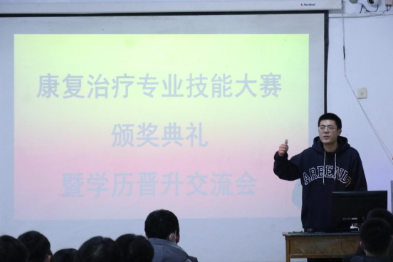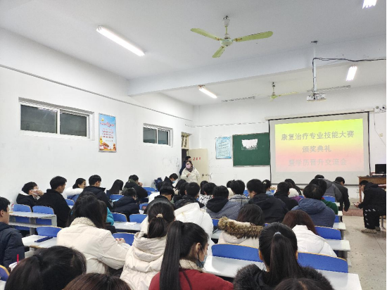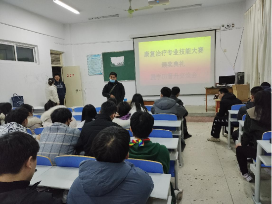 2021年12月7号晚上7点,医学院康复治疗专业教研室在明德楼209教室对2020级(本/专)康复治疗专业一百余名学生举行了2021年职业技能大赛颁奖典礼暨学历晋升交流会。本次工作由苑勇副院长总负责,武丹主任进行规划和主持,康复教研室全体教师对本专业职业技能大赛、本科生考研,专科生升本等问题进行了指导和经验分享,并针对学生提出的问题进行详细的解答,会议结束后,学生普遍反馈受益匪浅,效果很好。