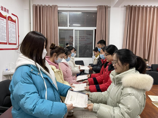 总结会上,护理教研室老师颁发奖章给与奖励。