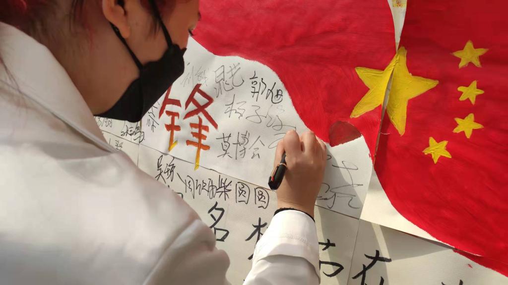 本次活动以医学院团总支宣传部制作的展板形式开展,签名活动现场气氛热烈,吸引来来往往的同学纷纷驻足在展板上郑重的签下自己的名字,决心用实际行动践行弘扬雷锋精神的诺言。