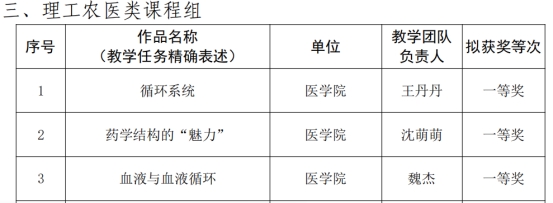 医学院五个教师团队在2024年3月27日举行的校级教学能力比赛激烈角逐中荣获佳绩: