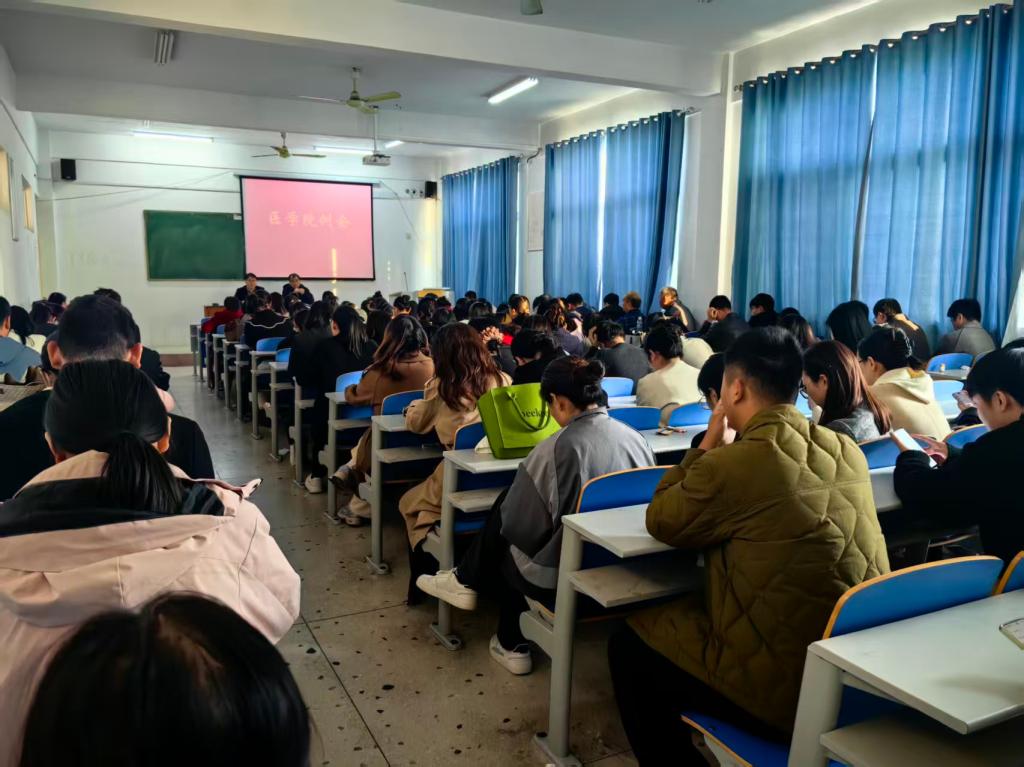 2025年10月28日下午,医学院工作例会在明德楼309召开,河南科技职业大学副校长艾旭光、医学院院长苑勇、院领导班子成员及全体任课教师参加此次会议。