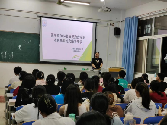 2022年6月7号晚上7点,医学院康复治疗专业教研室在励志楼309教室对即将去毕业实习的2024届本级康复治疗专业一百余名学生举行了毕业论文指导座谈会。本次工作由苑勇副院长、张德言副院长负责,武丹主任进行规划和主持,李强老师主讲,张亚丽老师辅讲,康复教研室全体教师参加。