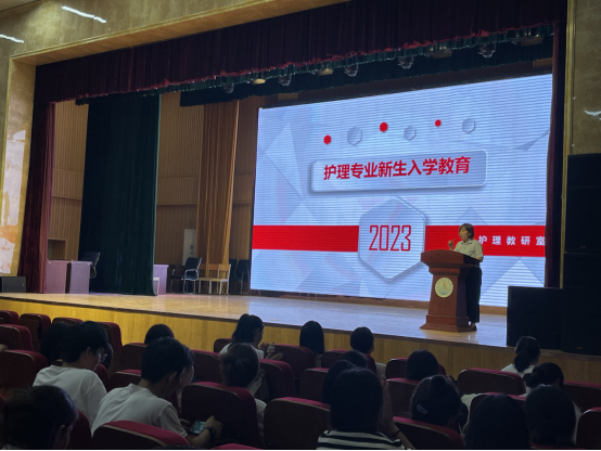 2023年9月18日晚19点,在河南科技职业大学图书馆三楼报告厅,2023级专升本护理新生入学教育顺利召开,参加活动的有周口市中医院副院长张红梅、医学院副院长卢彩平、基础护理教研室主任韩艳杰、临床护理教研室主任张沐、人文护理教研室主任张艺,和护理教研室的各位老师。