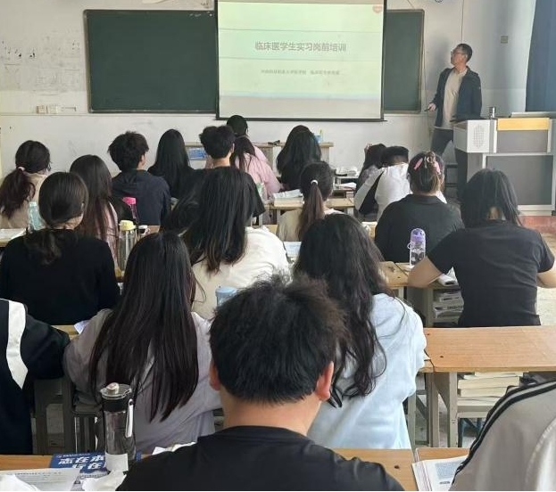 为帮助2023级临床医学生顺利完成从校园理论学习到临床实践的角色转变,提升其职业素养与临床技能,临床医学教研室于2025年4月28日开展了临床医学生实习岗前培训活动。此次培训旨在让医学生们快速熟悉医院环境与工作流程,为即将开启的临床实习生涯奠定坚实基础。