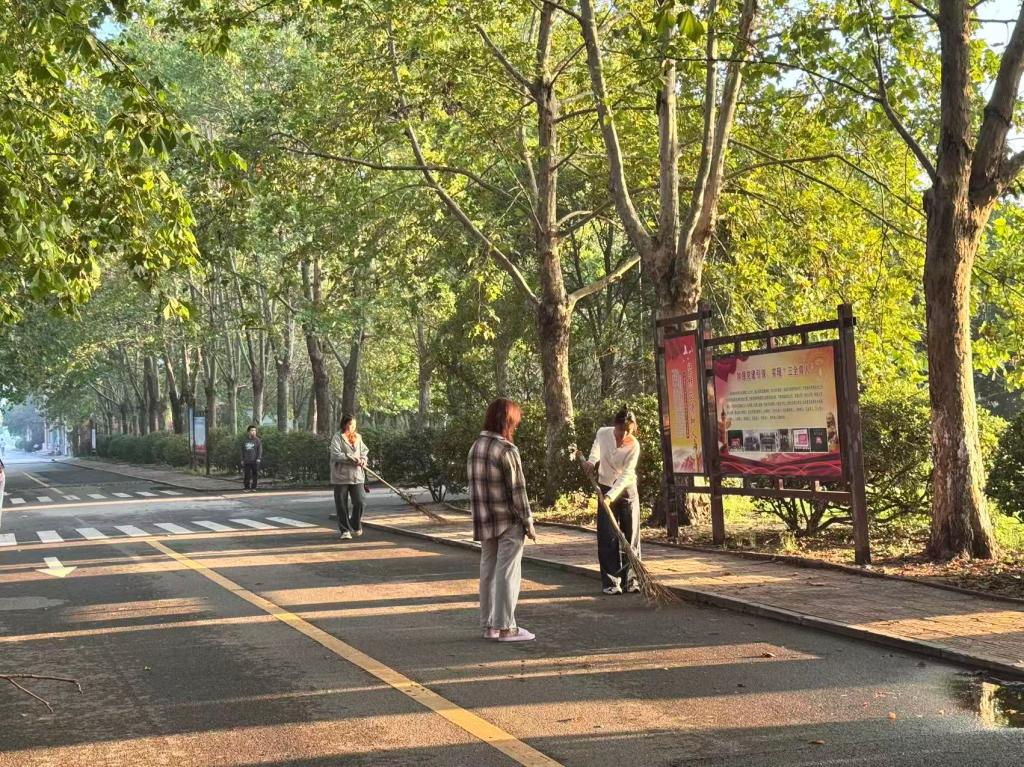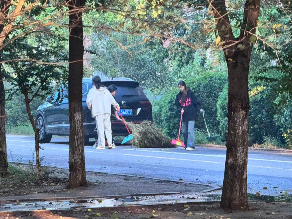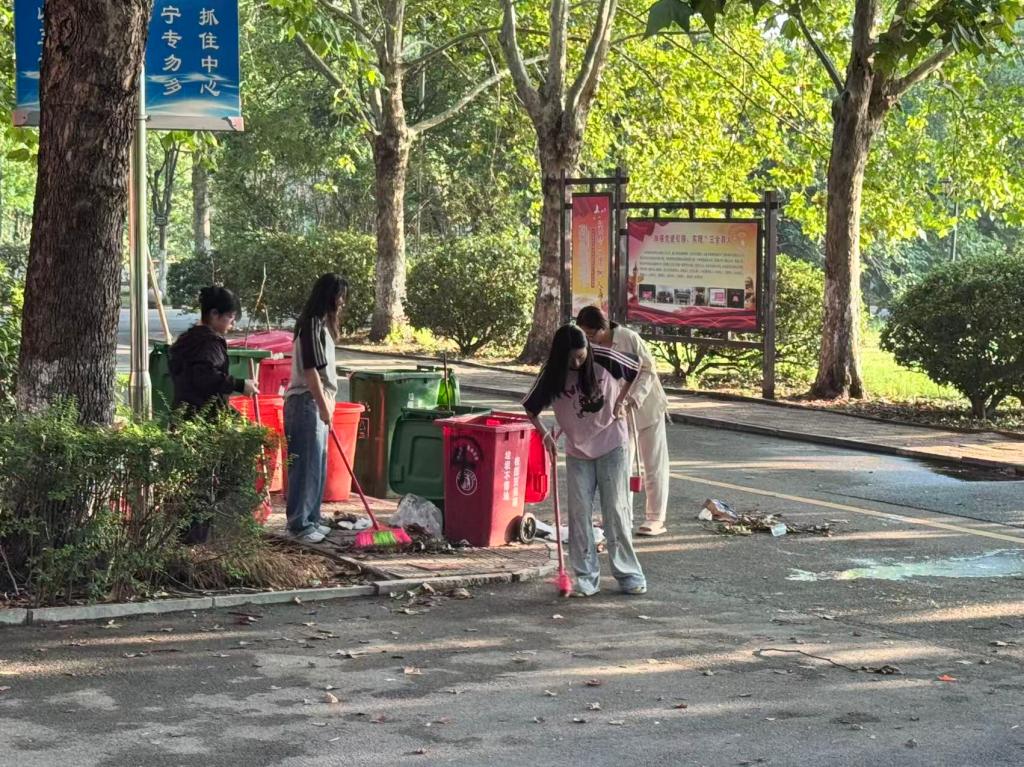 在垃圾分类区域,同学们化身“校园环境守护者”,手持扫帚等工具细致开展工作。他们弯腰俯身,认真打扫地面散落的纸屑、果皮与包装袋,对藏匿在缝隙中的残留垃圾更是逐一排查、彻底清除,确保分类区域既无垃圾堆积,也无卫生死角。同学们以实际行动践行绿色环保理念,不仅让垃圾分类区域面貌焕然一新,更助力校园垃圾分类工作朝着规范化、精细化方向推进。