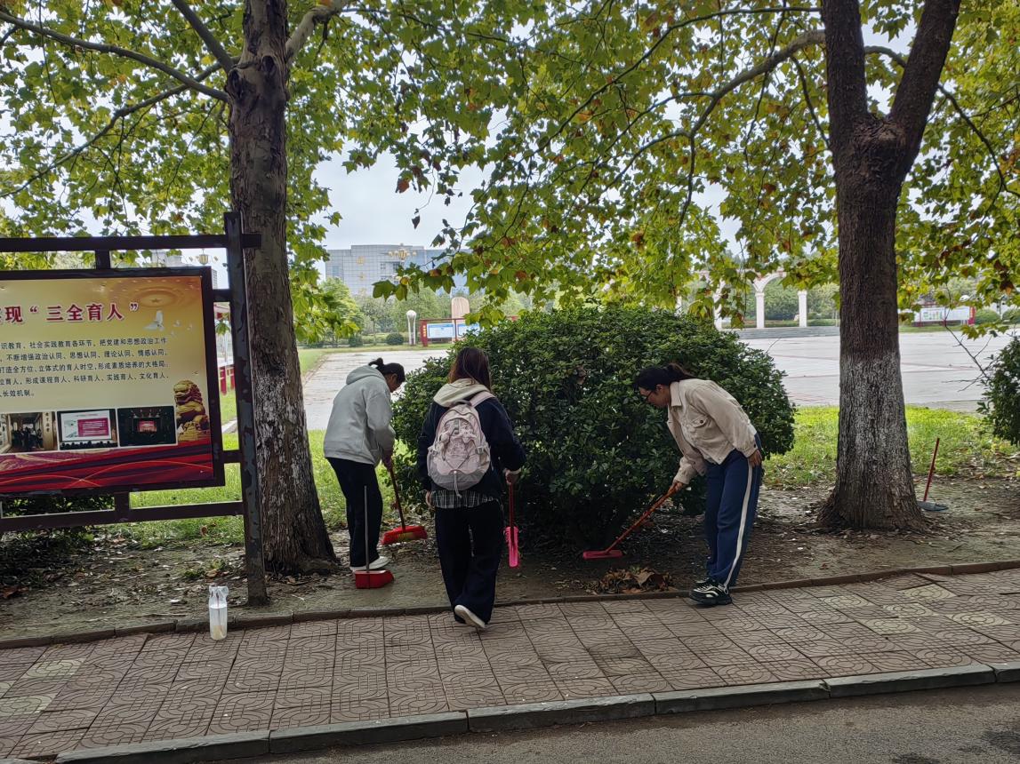 10月14日,2025级中医班值日生在辅导员孔义红老师的带领下,开展校园大扫除活动,对白色垃圾和落叶进行集中清扫,以劳动之力为校园环境“焕新颜”。
