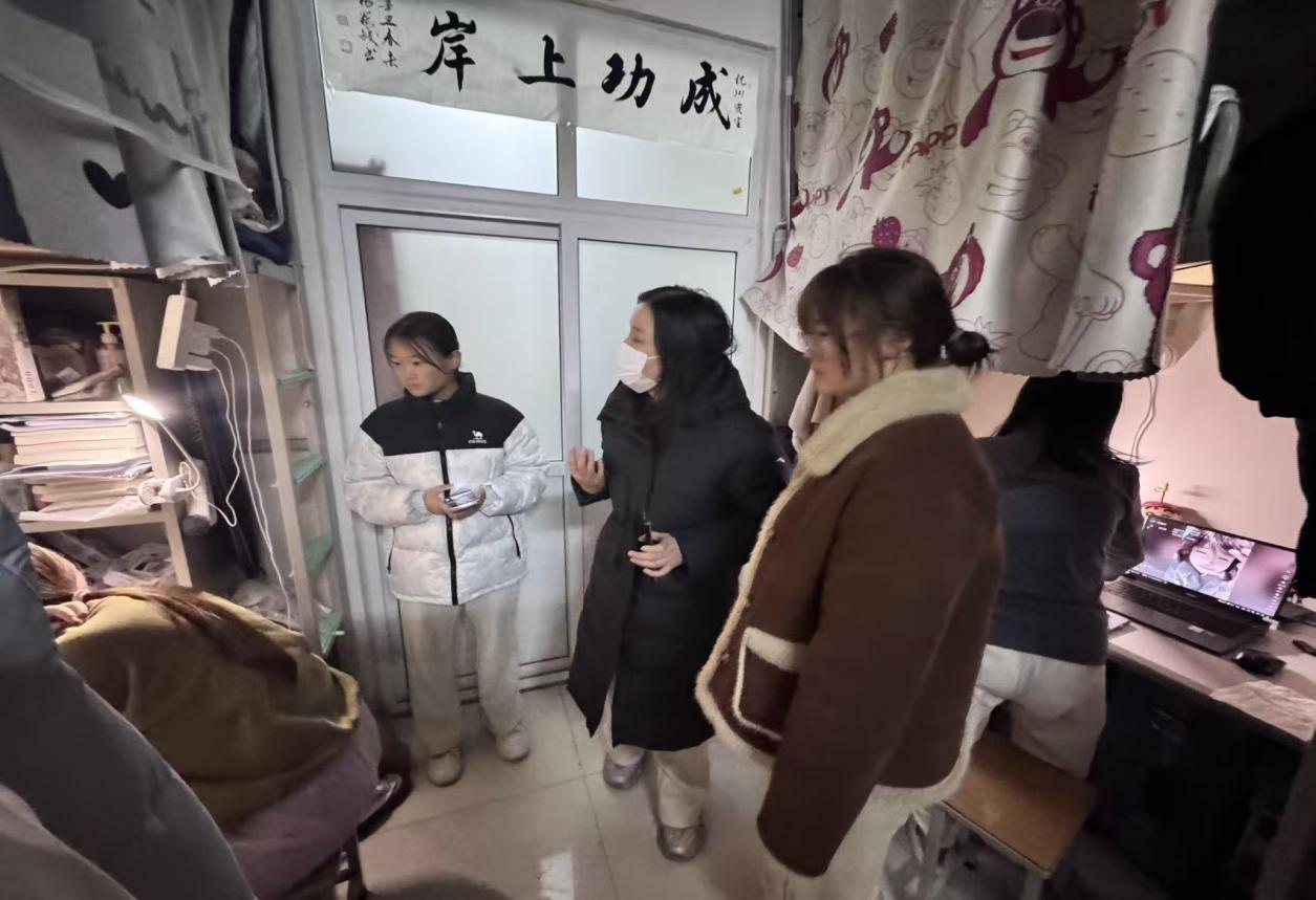 对排查中发现的个别安全隐患,检查组当场登记造册,详细记录宿舍号、隐患类型及整改要求。针对可及时整改的问题,督促学生现场清理违禁物品、规范用电行为,确保宿舍的安全。在检查各类违禁物品的时候,还关注学生们的就寝情况,确认每个学生都在宿舍、知去向。同时,学生会成员以朋辈身份分享安全常识,助力营造“人人讲安全、事事守安全”的良好氛围。
