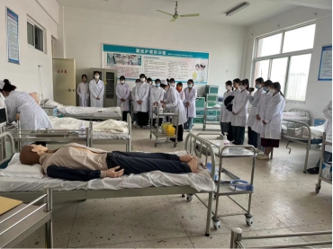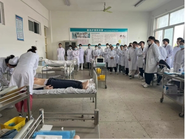 2023年9月20日医学院组织22级专科护理三班和四学生观看参加过去年护理技能大赛的同学胡怡雯和张林林同学的操作演示。医学院院长苑勇、卢彩平、护理教研室主任韩艳杰等若干护理专业骨干教师参与活动。