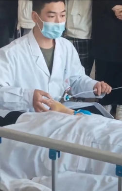 本次演示涉及项目:双人徒手心肺复苏、心电监护、静脉输液和吸痰等操作。参赛同学的操作演示规范又熟练,整个过程能够营造紧张、专业的护理氛围,有很强的代入感,使观众沉浸其中。