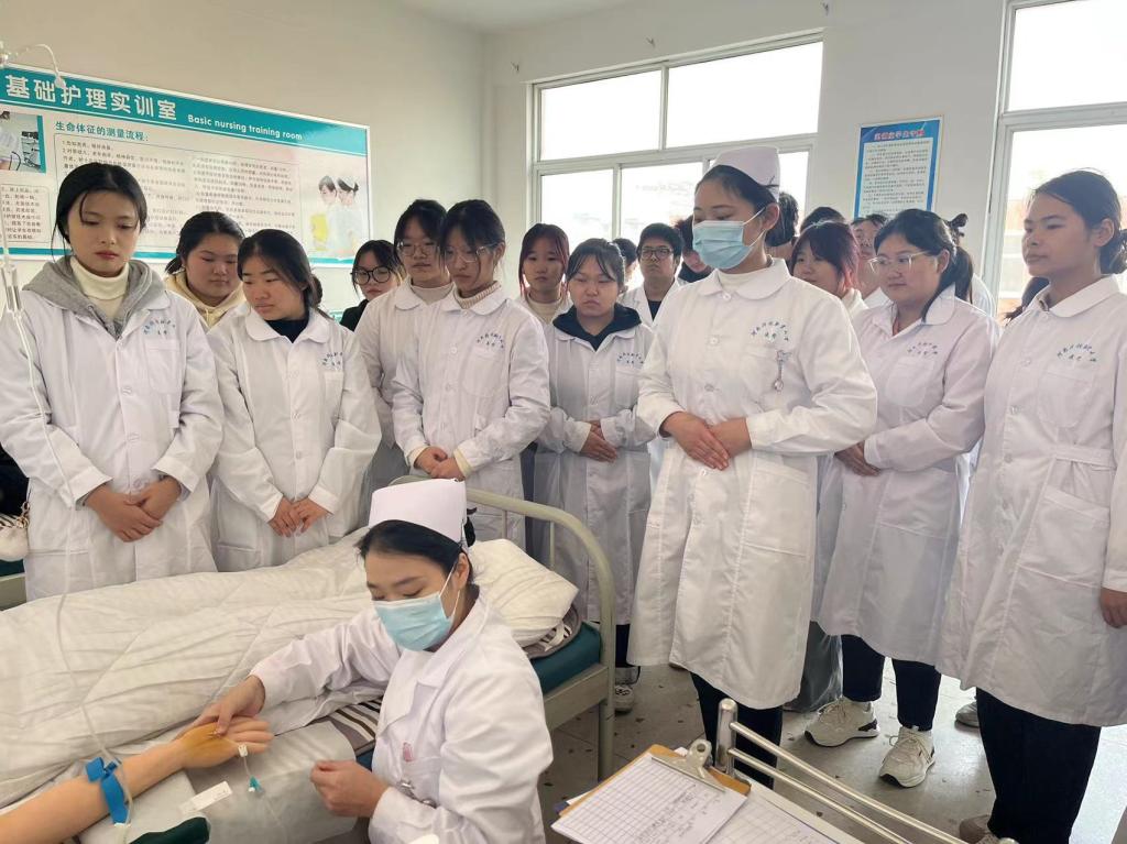 医学院基础护理教研室负责护理基本技能操作的实践实训。同学们那认真、自信、专注的表情深深地吸引着老师和观摩者。医学院全体护理专业学生,相互展示专业技术,相互比拼,相互协同,朝着一个共同的目标“做一个合格的医护生”努力前行。