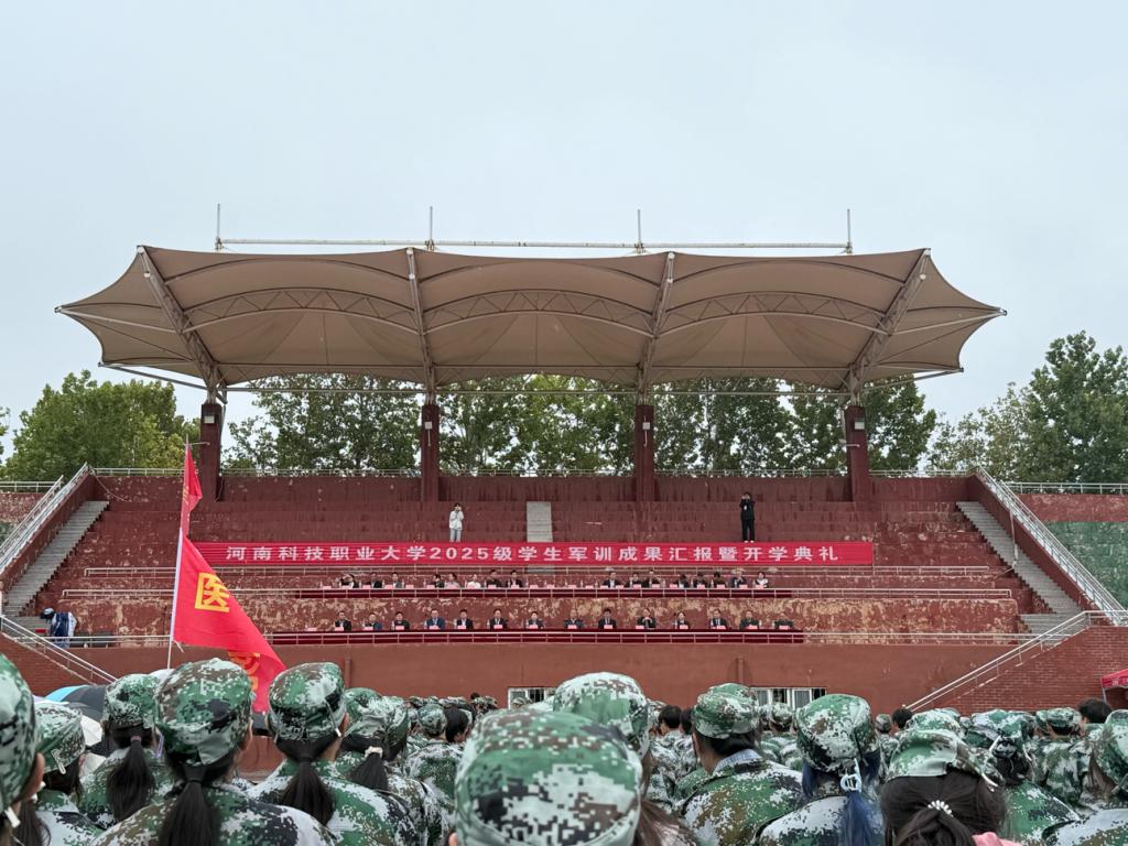 9月27日,河南科技职业大学2025级学生军训成果汇报暨开学典礼在学校运动场隆重举行。2025级中医班全体同学以饱满的精神状态全员参与军训汇演,在迷彩方阵中展现出中医专业学子的别样风采。