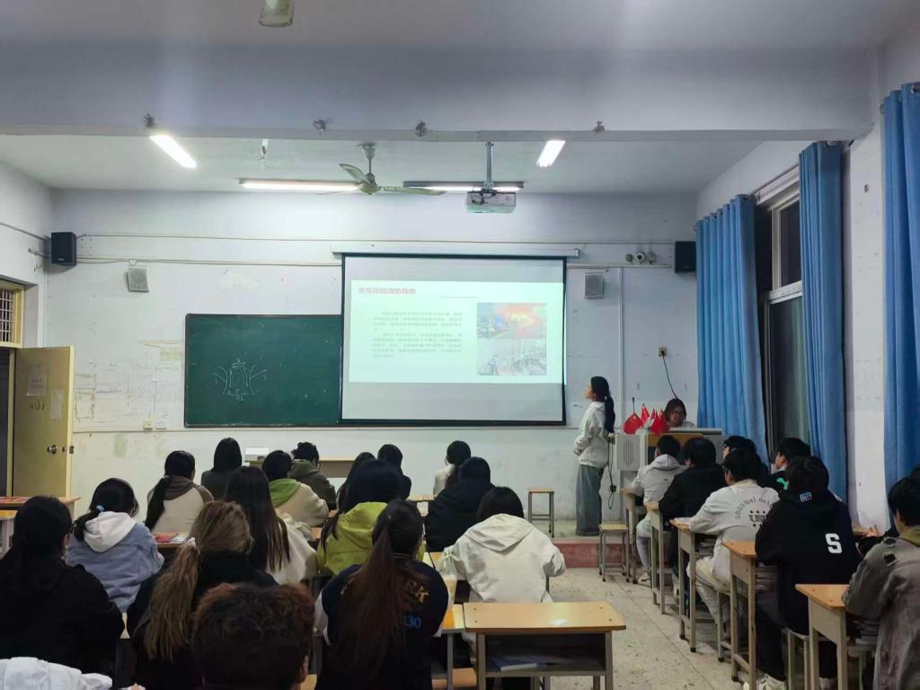 班会涵盖防电防火、安全骑行、宿舍文明、日常平安四大核心板块。班会以真实案例切入,让安全意识深入人心。主讲人通过列举某高校女生寝室火灾事件,警示私用大功率电器、疏忽用电的严重危害,详细列出私拉乱接电线、易燃物管理不当等五类校园常见消防隐患,并向大家普及火灾逃生技巧。针对日常平安,班会还重点覆盖运动安全与网络安全。运动安全部分,主讲人结合校园运动场景提醒同学们,避免因剧烈运动引发肌肉拉伤、电解质紊乱等问题;网络安全部分,主讲人通过案例讲解,引导大家提升信息甄别能力、学习网络相关法律法规、保持理性思考,从自身做起拒绝传播网络谣言。