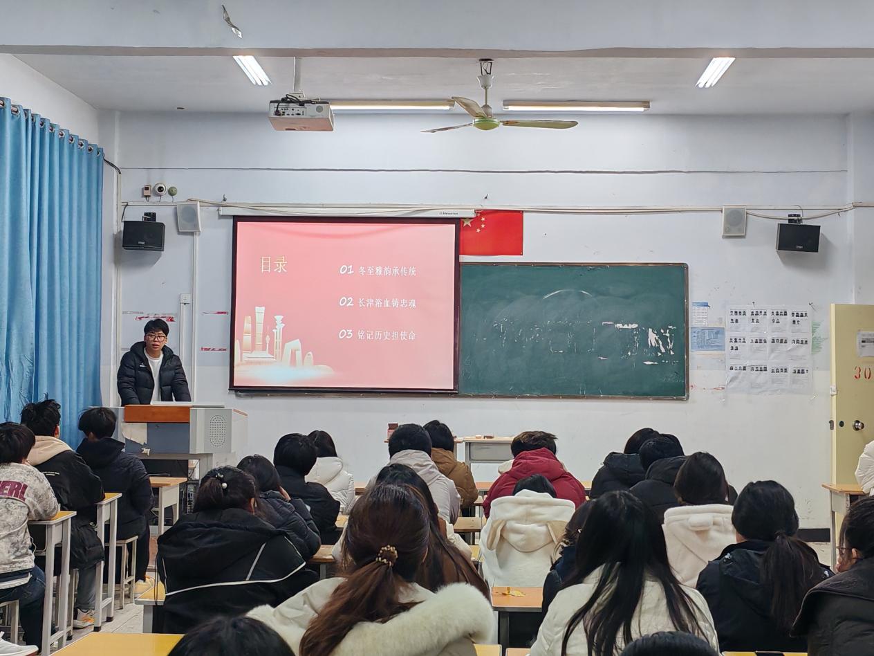 为深化青年学生思想引领,传承中华优秀传统文化,赓续红色革命基因,河南科技职业大学医学院于2025年12月19日开展了以“冬至承文脉,长津铸军魂”为主题的思政班会。