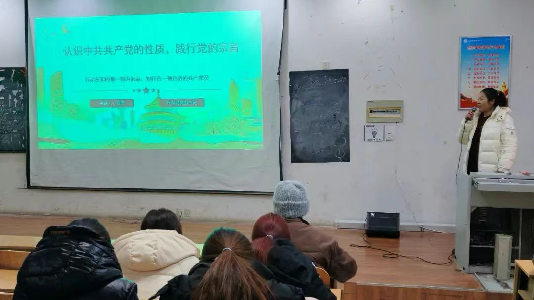 2024年12月11日,河南科技职业大学医学院于老综合楼西南一教室举办入党积极分子培训。本次第三讲党课以“党的宗旨和性质”为主题,由医学院党委书记方园作为主讲人。本次培训旨在加强入党积极分子的党纪教育,深化对党的宗旨和性质的认识。医学院全体入党积极分子积极响应,参与本次培训。