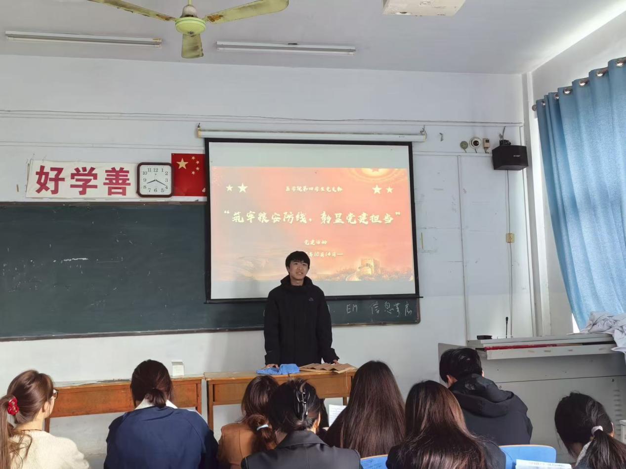 2025年10月14日在励志楼409室,医学院第四学生党支部开展以“筑牢粮安防线,彰显党建担当”为主题的党建活动。为深入学习贯彻国家粮食安全战略,引导青年党员厚植爱粮节粮意识,医学院第四学生党支部以“筑牢粮安防线”为核心,精心组织开展相关活动。将党建引领与粮食安全教育深度融合,让“护好中国饭碗”的责任在青年群体中落地生根。