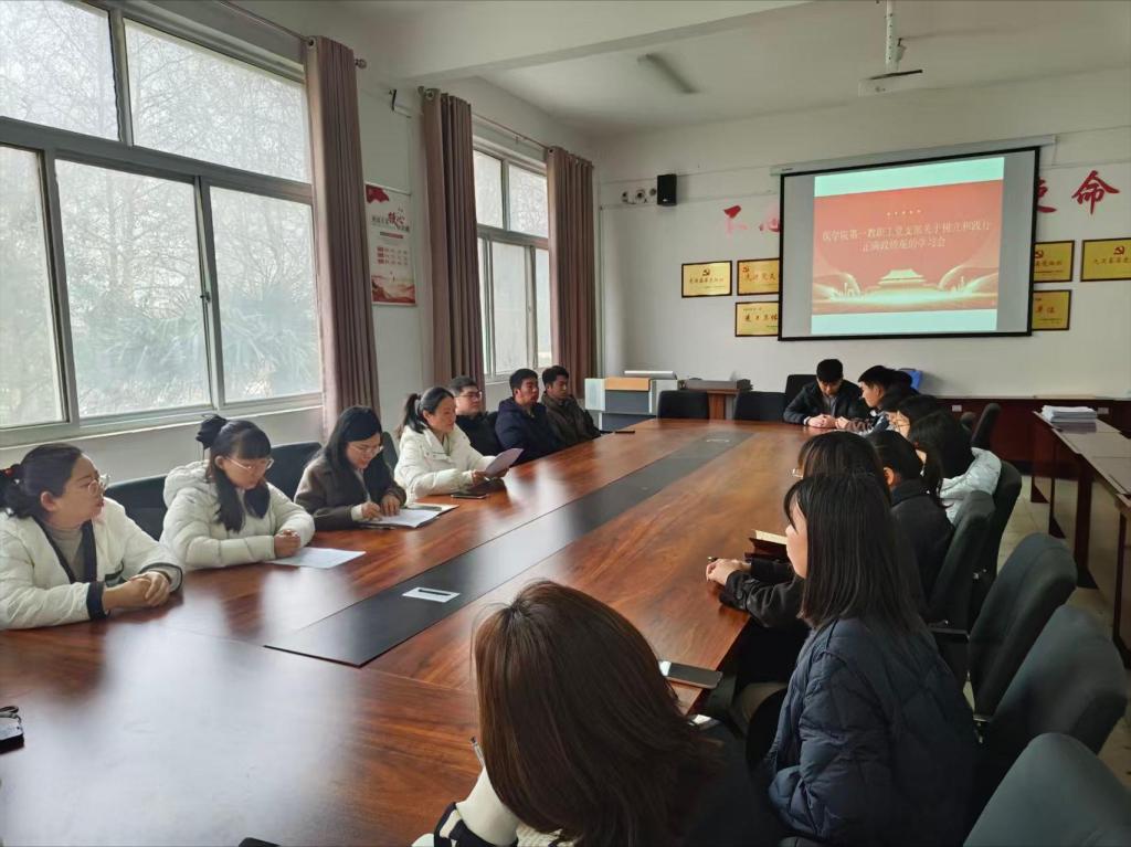 为深入学习贯彻习近平总书记关于树立和践行正确政绩观的重要论述,落实学校党委和学院党委学习教育部署要求,切实引导教职工党员筑牢思想根基、强化责任担当,医学院第一教职工党支部于2026年3月11日在明德楼201召开树立和践行正确政绩观专题学习会,支部全体教职工党员参加会议,支部书记梁海燕主持会议。
